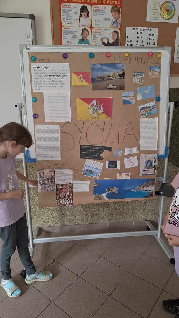 Zgodnie ze scenariuszem uczniowie klasy 3 przypominali sobie, jakie znają źródła informacji. Następnie poszukiwali informacji w internecie nt. dwóch wysp Sycylii i Islandii. Podzieleni na grupy tworzyli plakaty z przyniesionych materiałów. Porównywaliśmy wspólnie, czego nam potrzeba podczas wakacji na każdej z nich. Ostatecznie odbyło się głosowanie i zwyciężyła Isladnia - urokliwe, piękne widoki wodospadów i wulkanów.