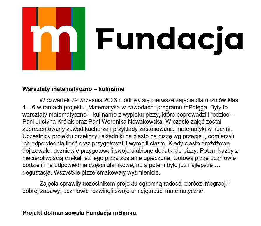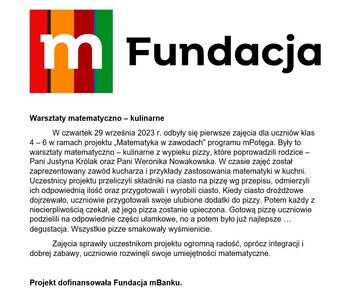 Warsztaty matematyczno – kulinarne Zdjęcia Zobacz również Pierwsze sukcesy sportowe naszych uczniów Europejski Dzień Języków Obcych To był... dzień pełen wrażeń... Warsztaty matematyczno – kulinarne Uroczysta Inaguracja Sportowego Roku Szkolnego... Mistrzostwa Powiatu Słupeckiego w Sztafetowych... 30 września 2023 Aktualności Wydrukuj Udostępnij Wyświetlono: 122