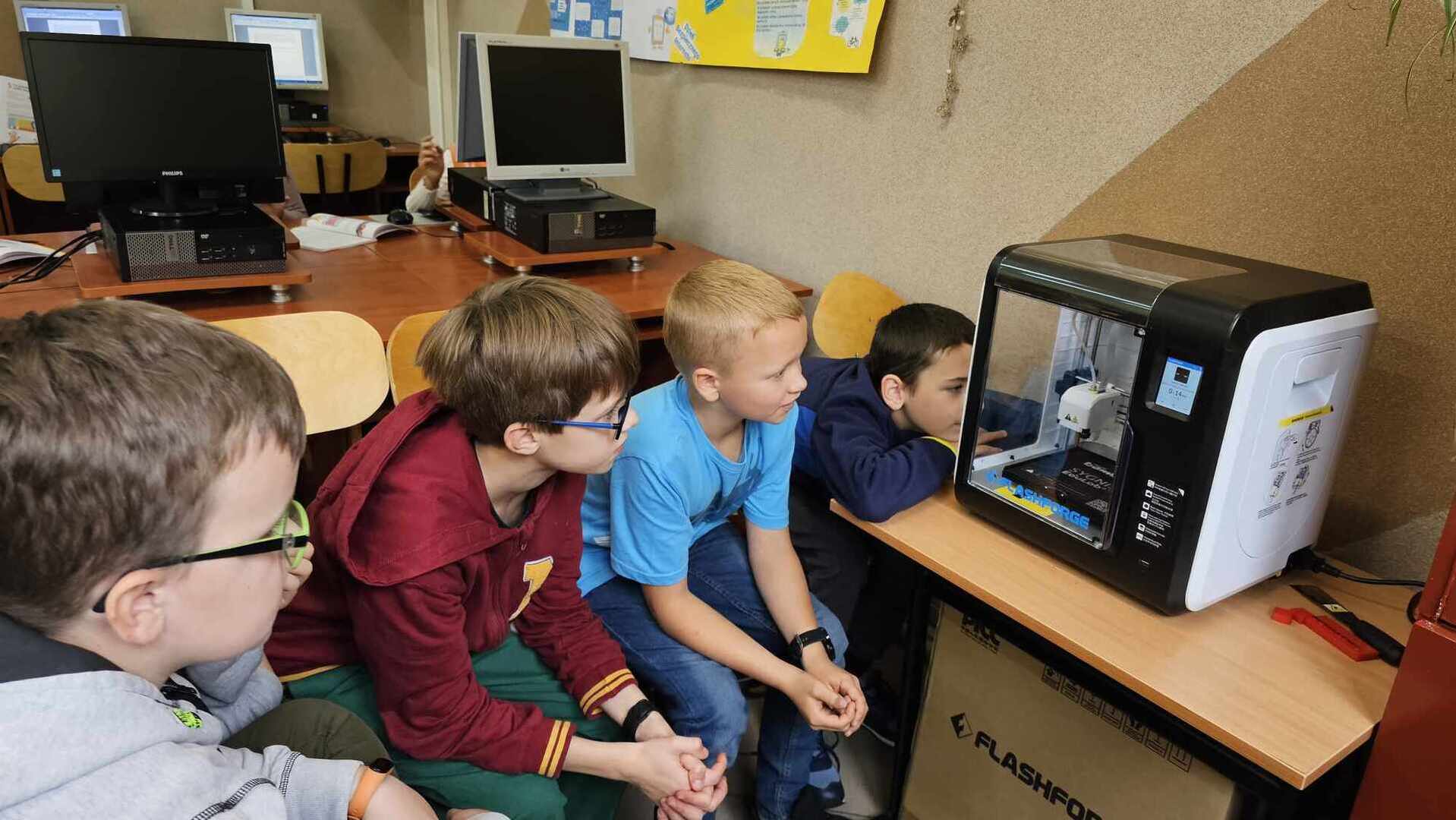 W dniu dzisiejszym na lekcji informatyki uczniowie klasy IV zapoznali się z drukarką 3D zakupioną w ramach projektu Laboratoria Przyszłości.