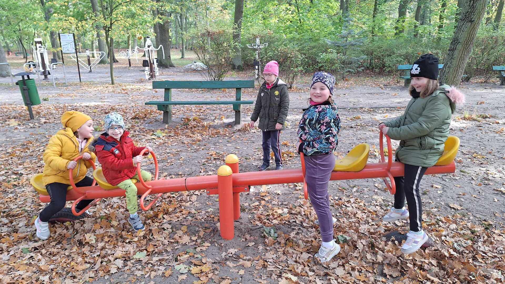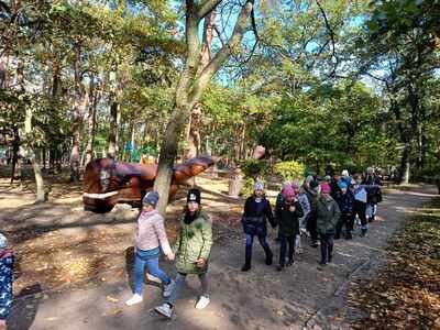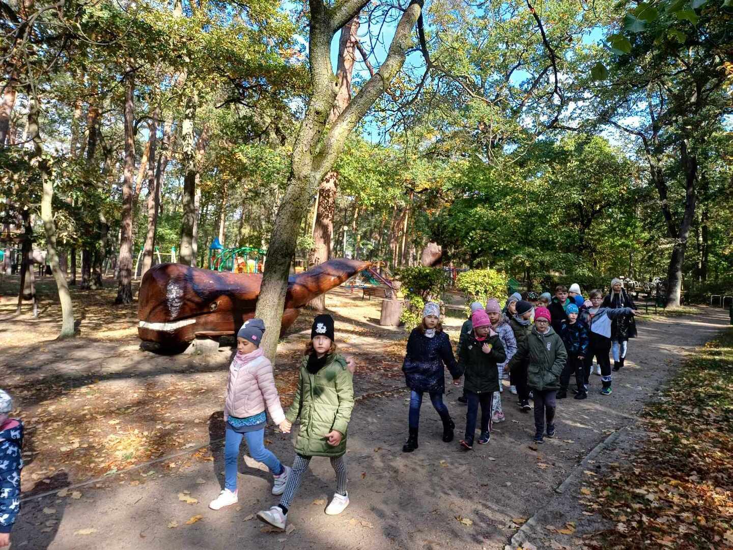 17 października uczniowie klas I-III oraz dzieci z oddziału przedszkolnego udały się w poszukiwaniu jesiennych oznak do parku miejskiego im. Fryderyka Chopina w Koninie. Dzieci utrwaliły tam poznane gatunki drzew oraz obserwowały zwierzęta zamieszkujące ten park. Punktem kulminacyjnym był seans filmowy dostosowany do wieku naszych podopiecznych w kinie Helios.