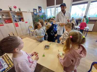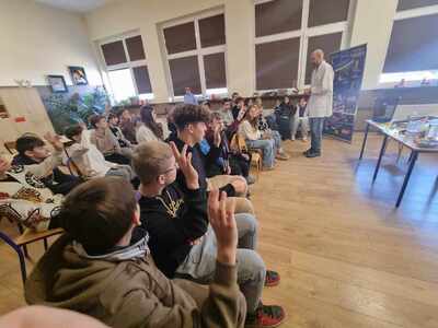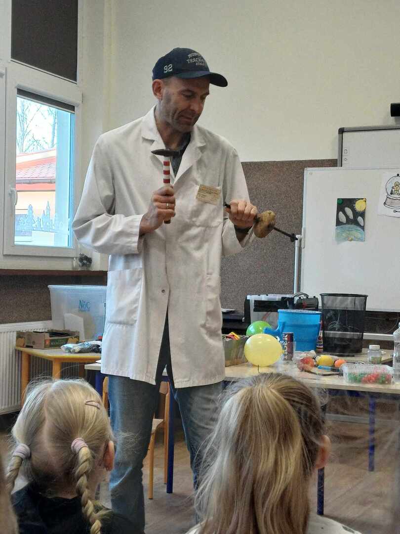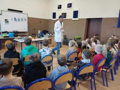 Uczniowie z klas I – VIII wzięli udział w niecodziennych i atrakcyjnych zajęciach z dziedziny fizyki, astronomii i chemii. Naszą szkołę odwiedził p. Robert Przybylski z Mobilnym Laboratorium, a tematem przewodnim było światło, lasery i światłowody. Prowadzący w bardzo widowiskowy sposób przybliżył trudne zagadnienia z fizyki oraz chemii. Uczniowie z wielkim zainteresowaniem obserwowali wszystkie pokazy. Warsztaty miały formę zajęć praktycznych, w czasie których młodzi naukowcy sami wykonywali eksperymenty i doświadczenia. Zajęcia były bardzo fascynujące. Z pewnością udział w żywej lekcji rozbudził wśród uczniów zainteresowanie przedmiotami przyrodniczymi.