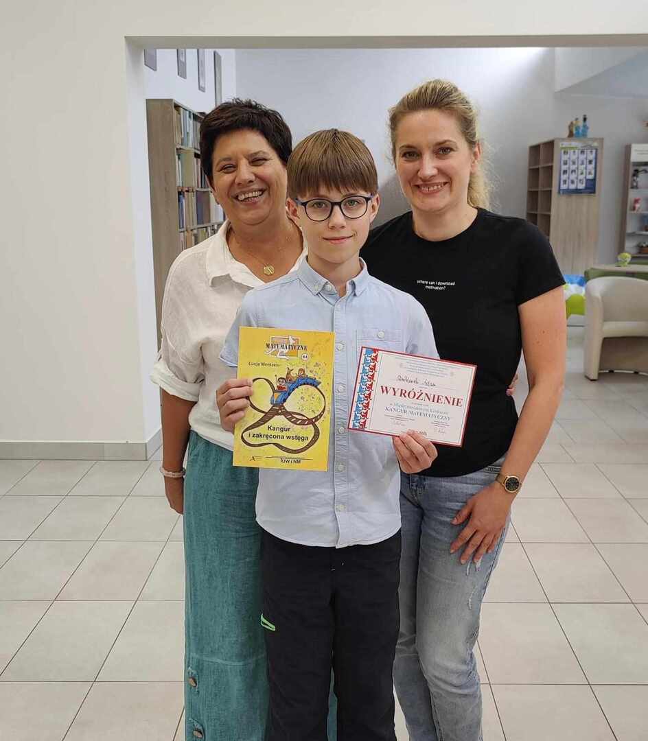 Kangur to międzynarodowy konkurs matematyczny skierowany dla uczniów szkół podstawowych, liceów i techników. W Polsce organizowany jest od 1992 roku, w tym roku do konkursu w całym kraju przystąpiło niemal 280 tyś. młodych miłośników matematyki. Uczeń naszej szkoły – Adam Wróblewski z kl. IV otrzymał wyróżnienie w kategorii Maluch. To już drugie z rzędu wyróżnienie dla Adasia. Serdecznie gratulujemy i życzymy dalszych sukcesów!