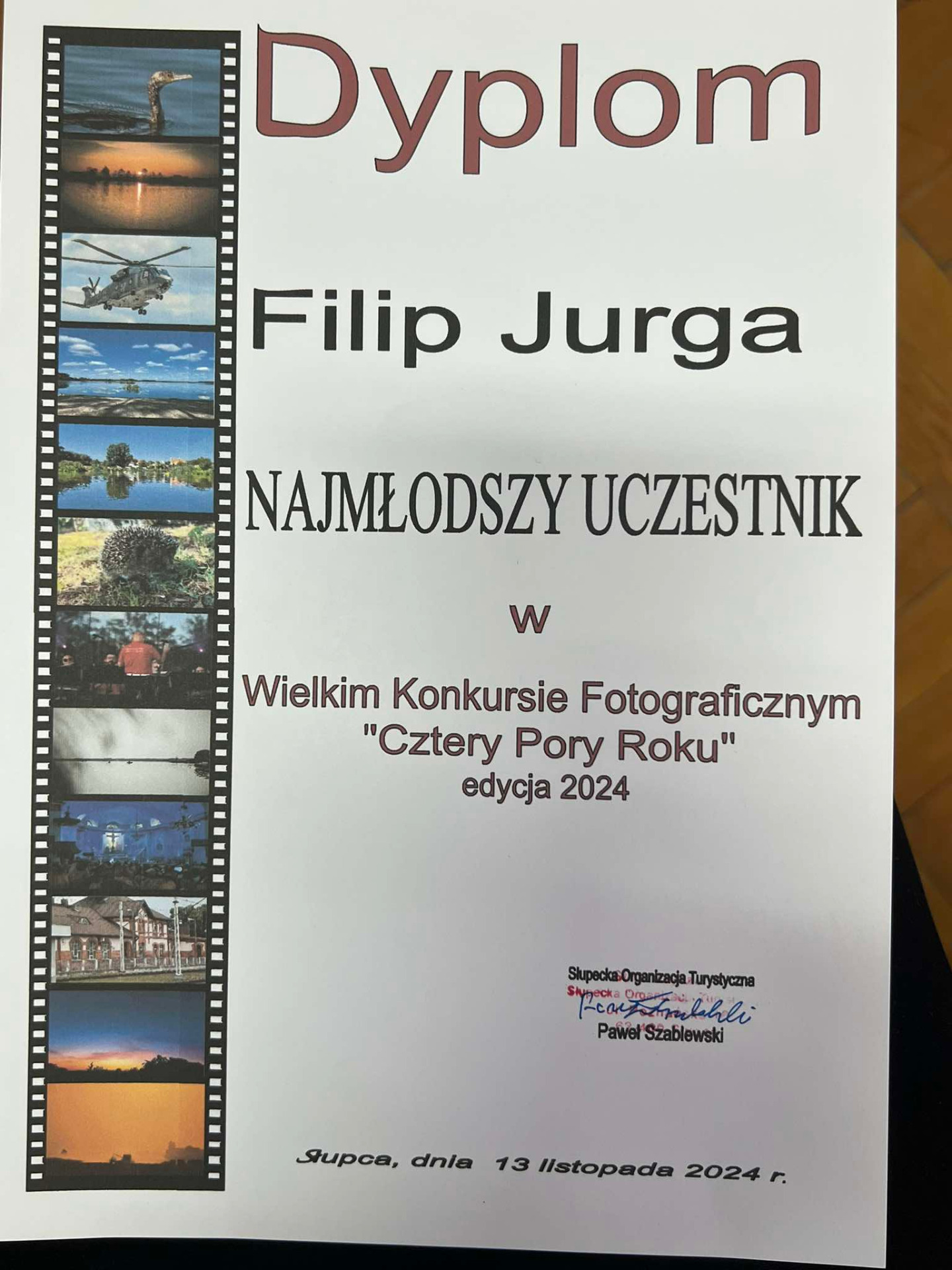 W środę 13 listopada w Starostwie Powiatowym w Slupcy został rozstrzygnięty Wielki Konkurs Fotograficzny " Cztery Pory Roku" edycja 2024, w którym wzięło udział 31 uczestników , nadsyłając 152 prace. Przedmiotem konkursu było promowanie Powiatu Słupeckiego okiem obiektywu. Konkurs odbył się w trzech kategoriach: Przyroda, Wydarzenia, Kultura i Historia. Nasi uczniowie pod opieką Beaty Jareckiej kolejny raz wzięli udział zdobywając nagrody i wyróżnienia.