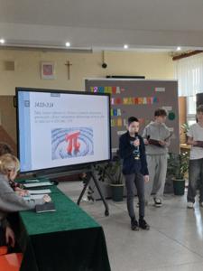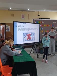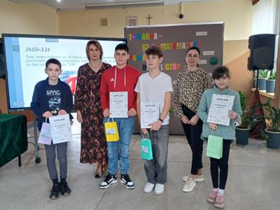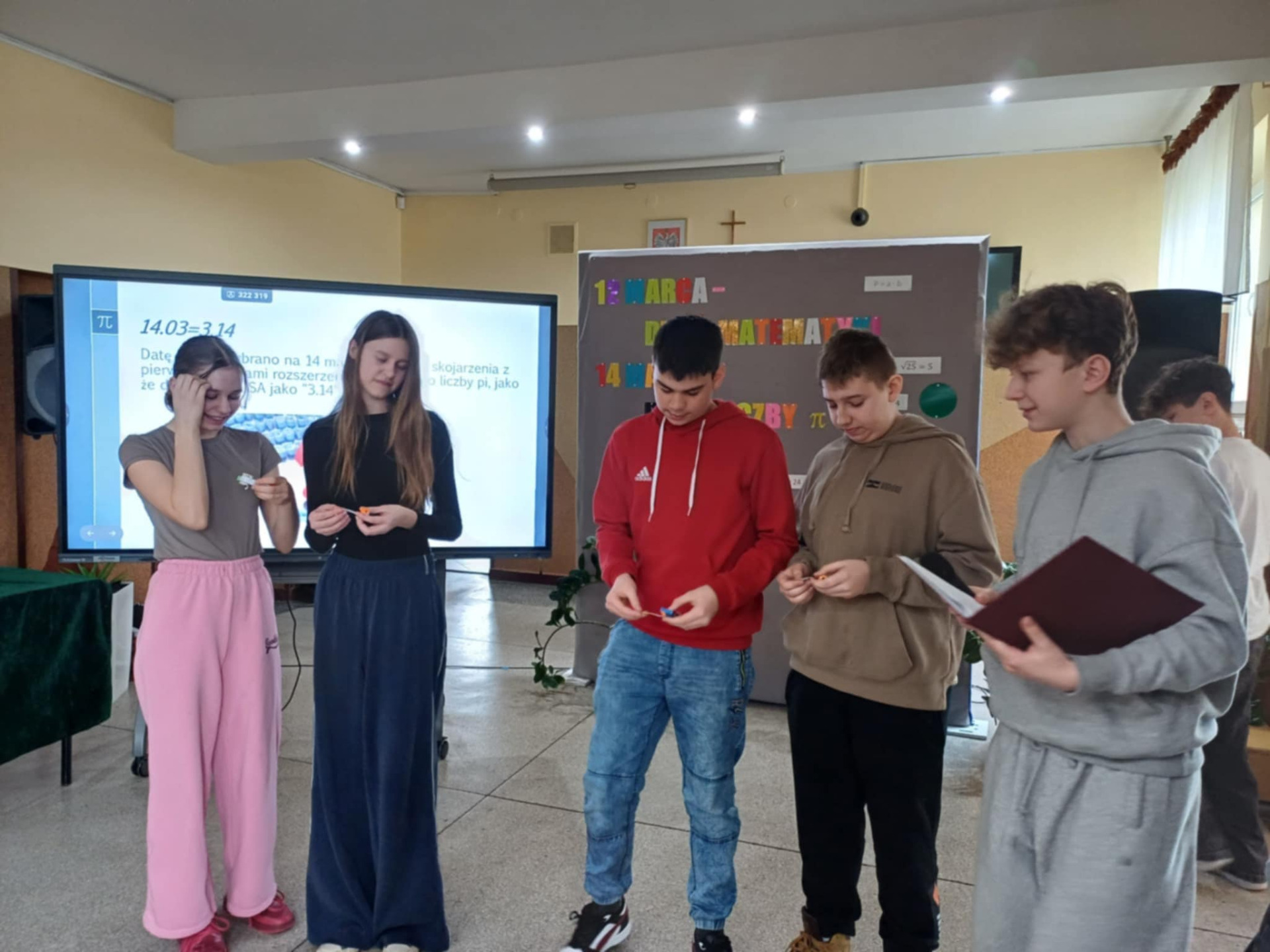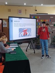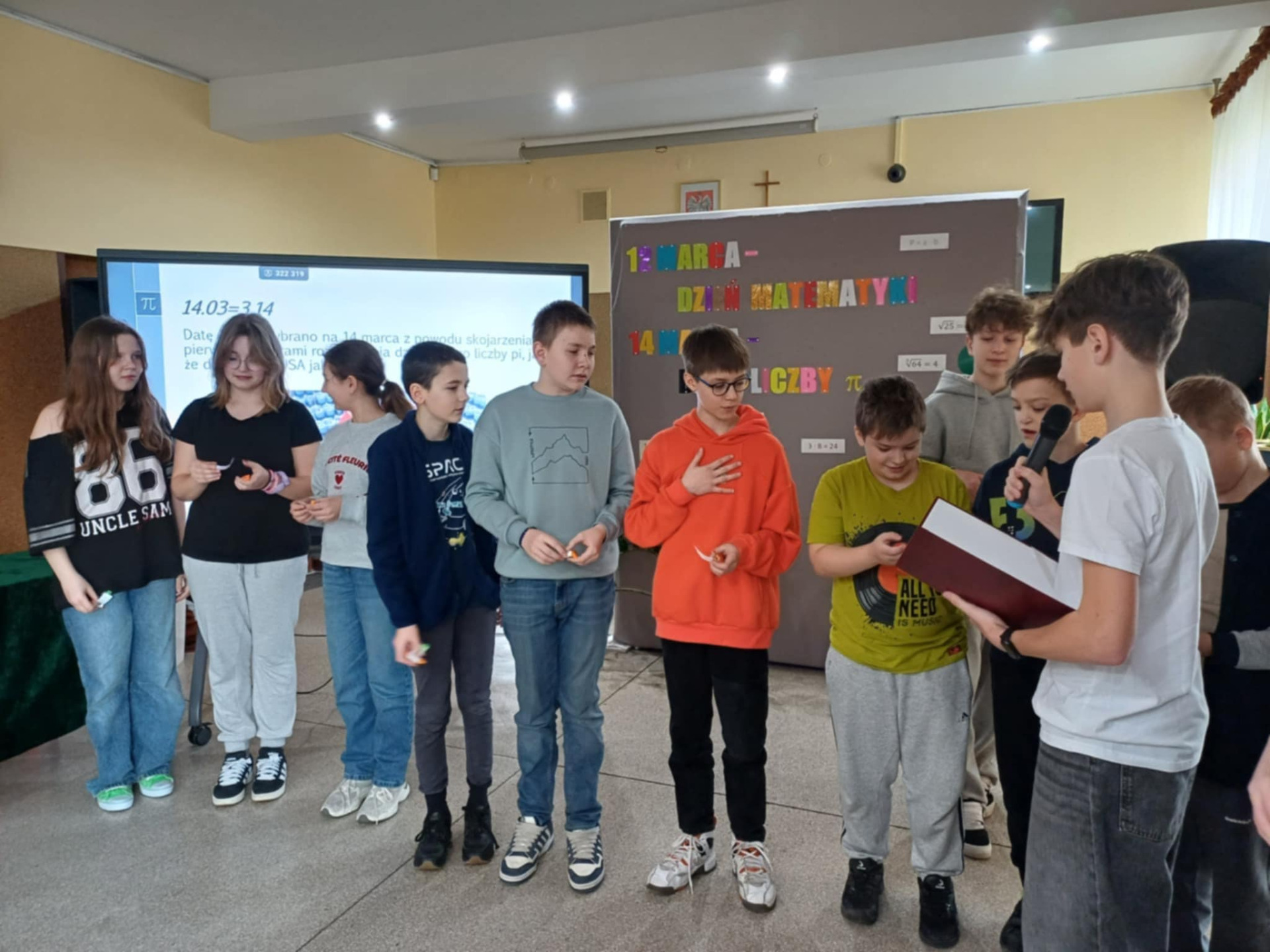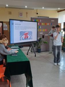 Dzisiaj w naszej szkole obchodziliśmy Dzień Matematyki I Dzień Liczby Pi. Była prezentacja o historii "ludolfiny", matematyczne losy z niespodzianką oraz konkurs na Mistrza Pamięci Liczby Pi. Zadaniem uczestników konkursu było zapamiętanie jak największej liczby cyfr po przecinku. Tytuł Mistrza zdobył Jakub Półrolniczak z kl. VII. Dzisiejsze wydarzenie było doskonałą okazją do rozwijania matematycznych pasji i dobrej zabawy.