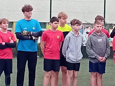 Nasza drużyna w składzie: Alex Reks, Wojciech Zaparty, Nikodem Paszek, Szymon Ławniczak, Wojciech Szczygielski, Mateusz Sulkowski, Jakub Półrolniczak, Miłosz Krzosek, Konrad Królak znaleźli się w grupie B wraz ze uczniami z Wólki, Cienina Kościelnego i Drążnej.