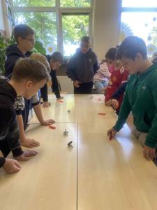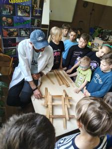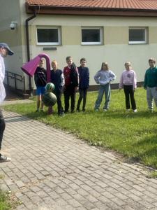 badali transfer energii podczas eksperymentu z piłkami, ucząc się jak działa przekazywanie siły i ruchu. Zajęcia były niezwykle dynamiczne, pełne śmiechu, zachwytu i – co najważniejsze – nauki przez zabawę. Dzieci wychodziły z sali z szerokimi uśmiechami, głową pełną pytań i nową porcją naukowej inspiracji.