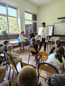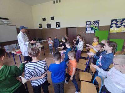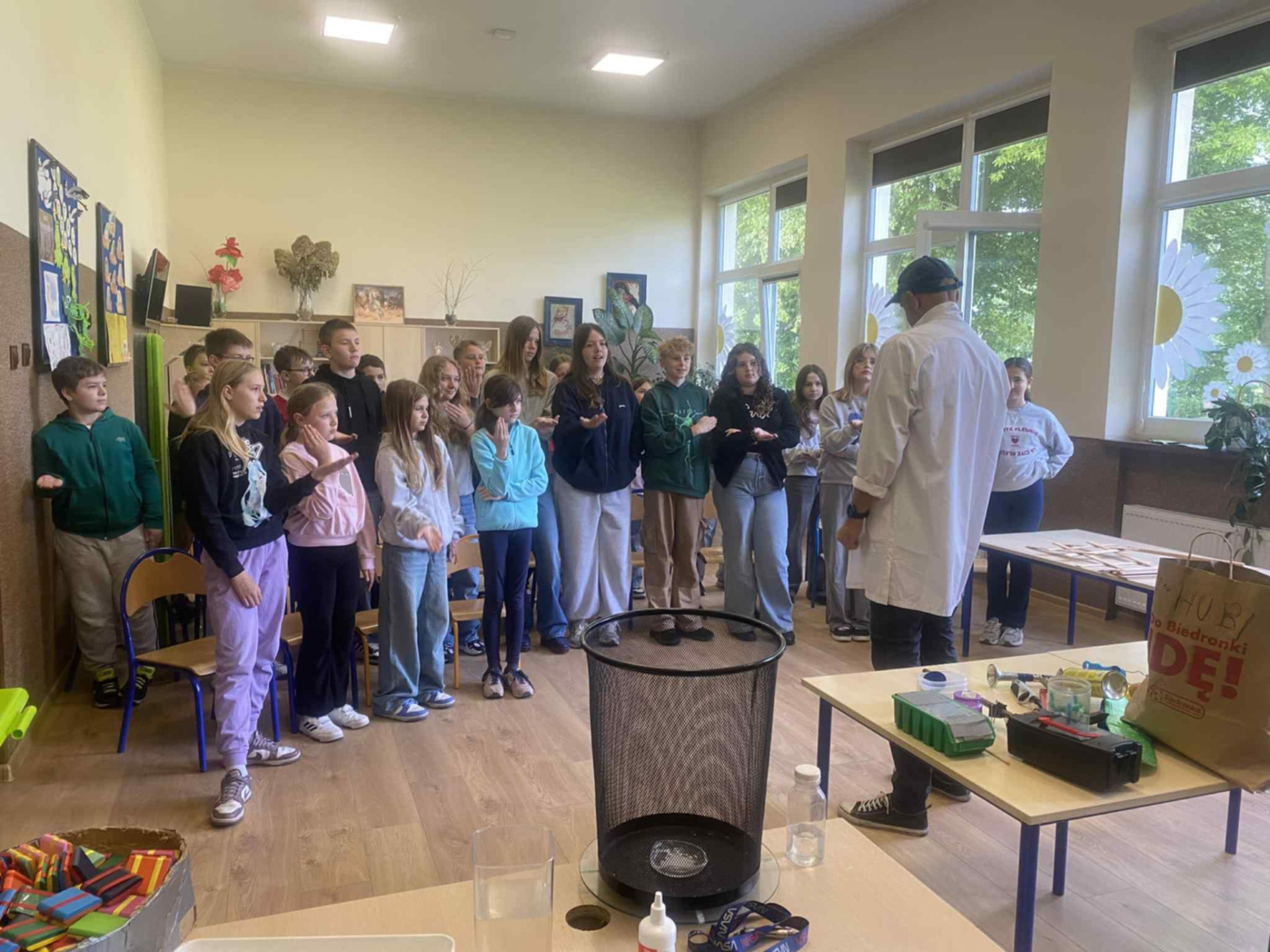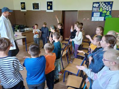 Uczniowie klas 1–8 naszej szkoły mieli wyjątkową okazję uczestniczyć w fascynujących warsztatach przyrodniczych prowadzonych przez pana Roberta Przybylskiego z Mobilnego Laboratorium "Pasjonaci". Była to prawdziwa uczta dla młodych umysłów pełnych ciekawości! Podczas zajęć uczniowie: